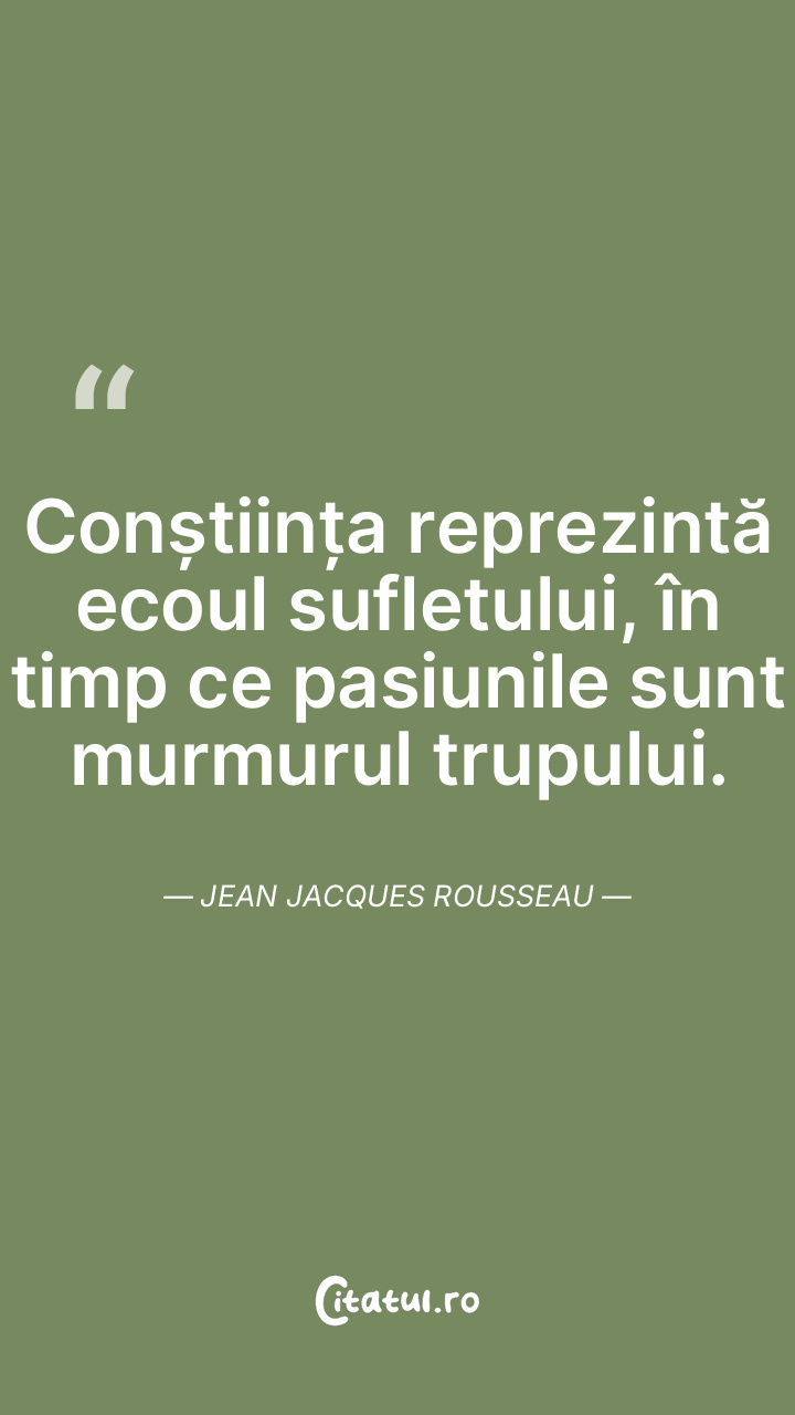 Conștiința reprezintă ecoul sufletului, în timp ce pasiunile sunt murmurul trupului. Jean Jacques Rousseau