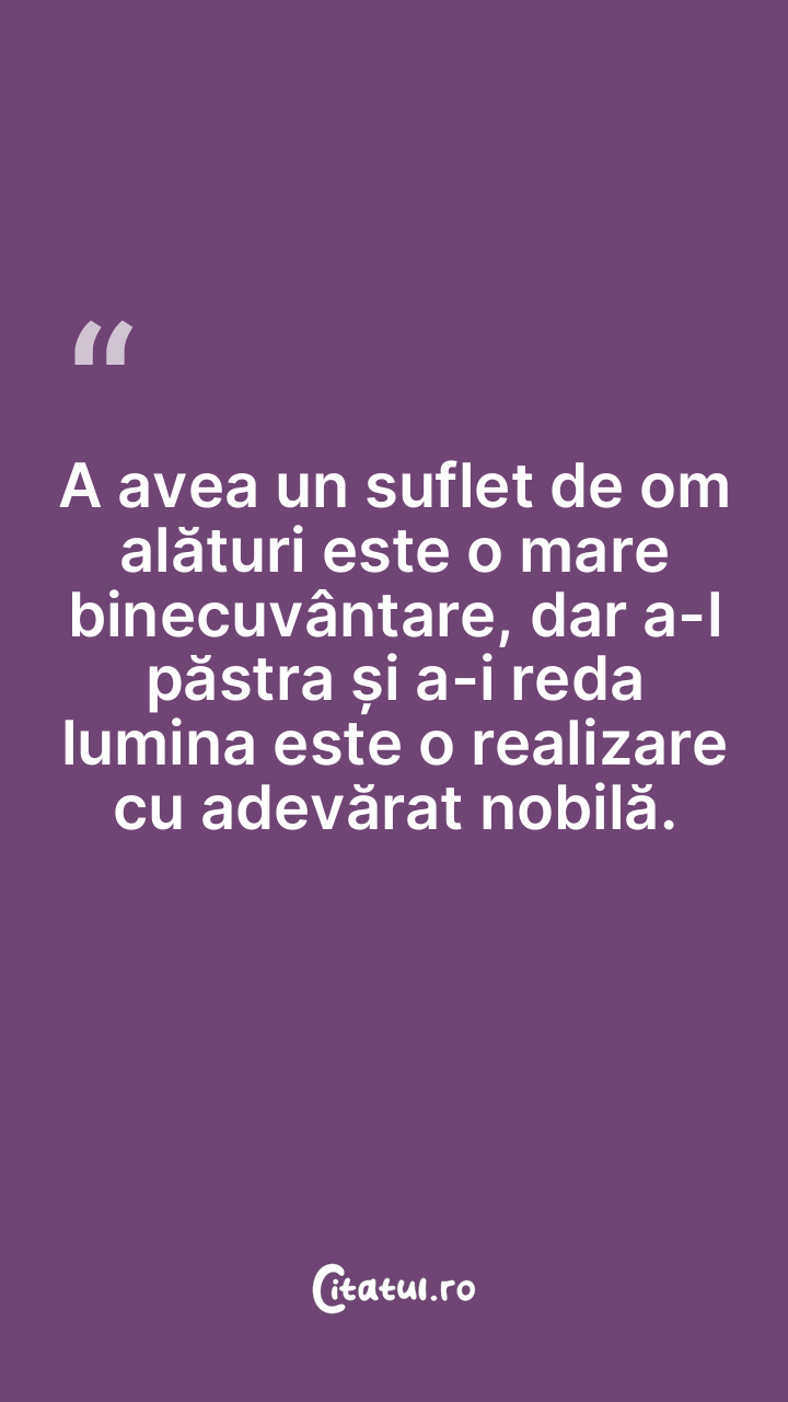 A avea un suflet de om alături este o mare binecuvântare, dar a-l păstra și a-i reda lumina este o realizare cu adevărat nobilă.