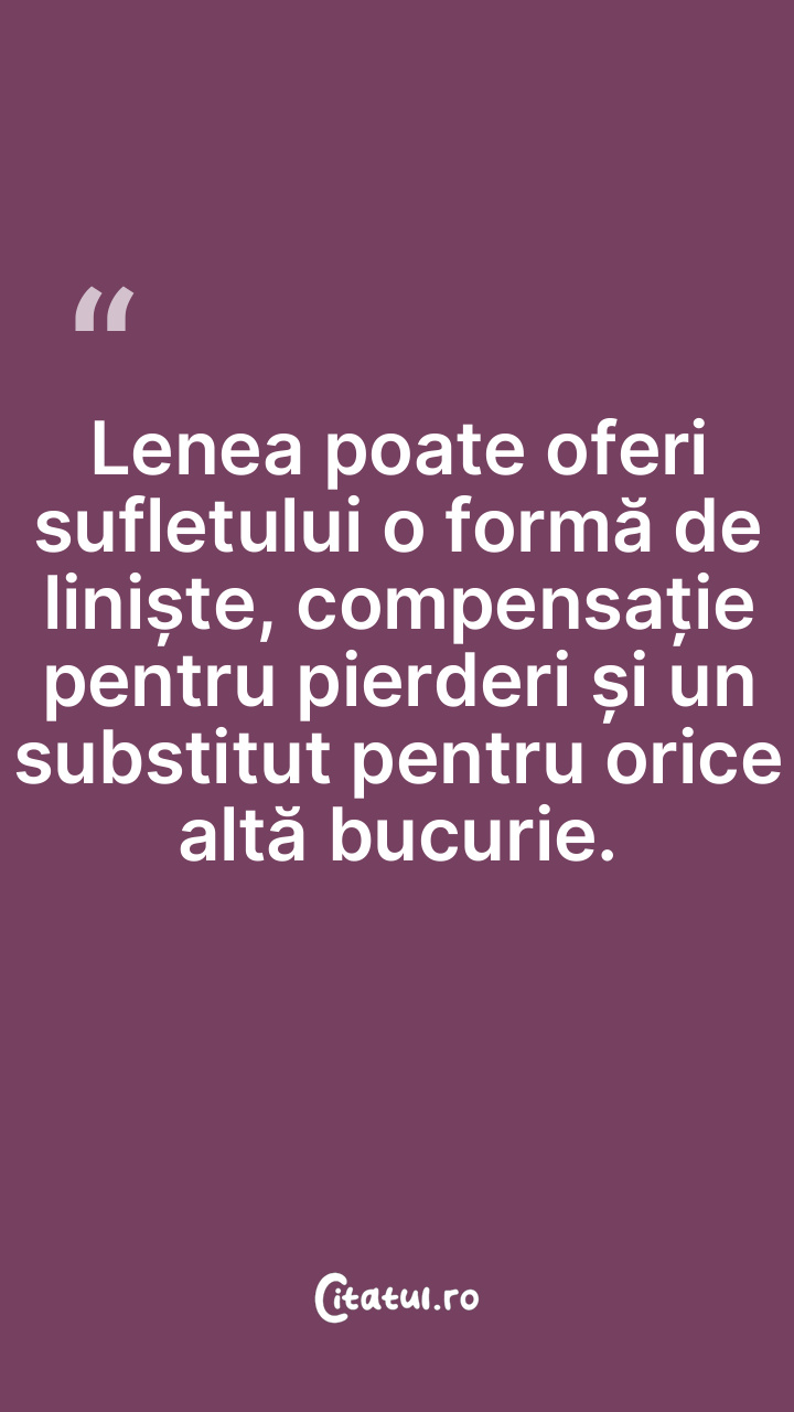 Lenea poate oferi sufletului o formă de liniște, compensație pentru pierderi și un substitut pentru orice altă bucurie.
