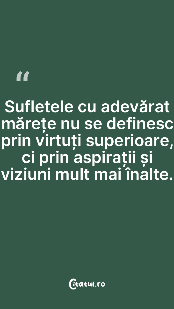Sufletele cu adevărat mărețe nu se definesc prin virtuți superioare, ci prin aspirații și viziuni mult mai înalte.