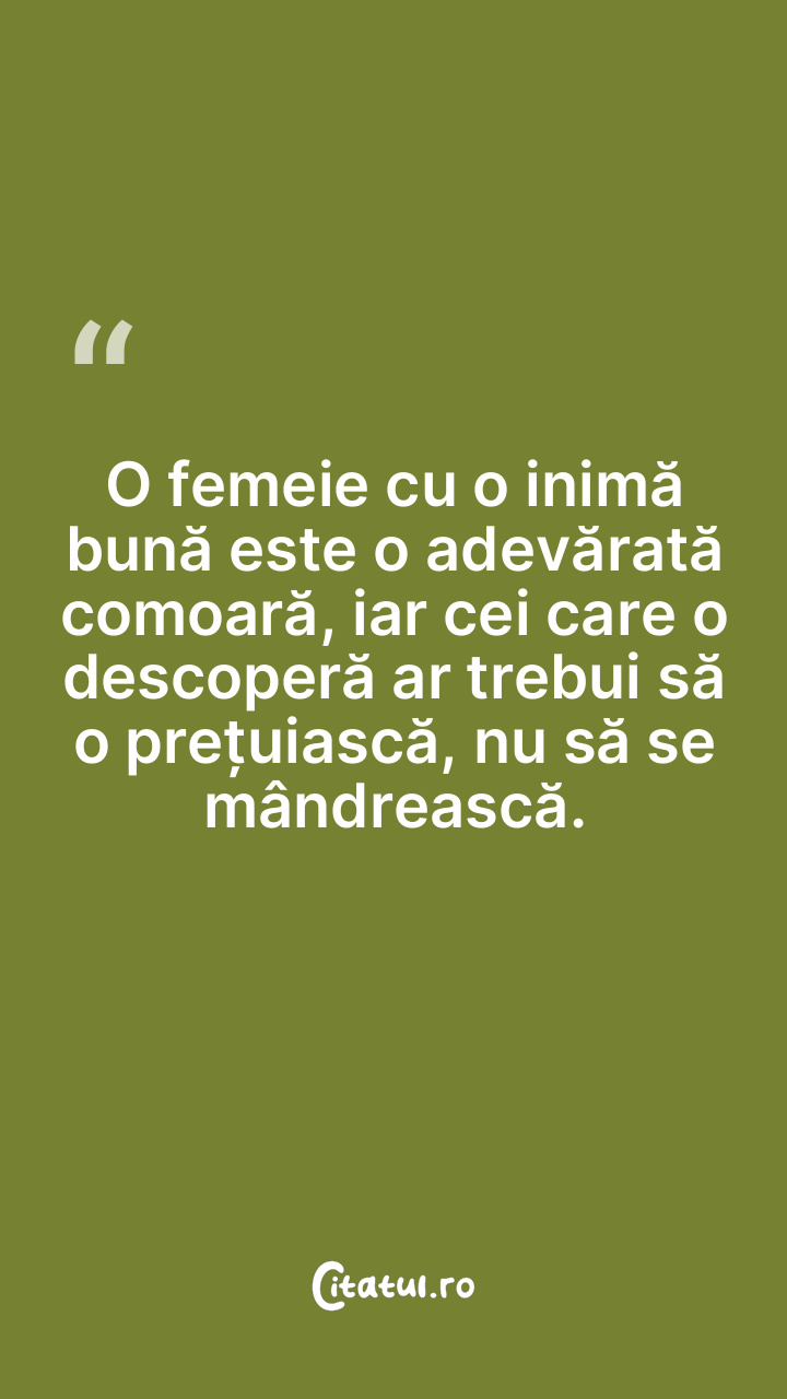 O femeie cu o inimă bună este o adevărată comoară, iar cei care o descoperă ar trebui să o prețuiască, nu să se mândrească.