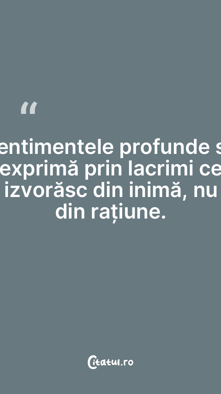 Sentimentele profunde se exprimă prin lacrimi ce izvorăsc din inimă, nu din rațiune.