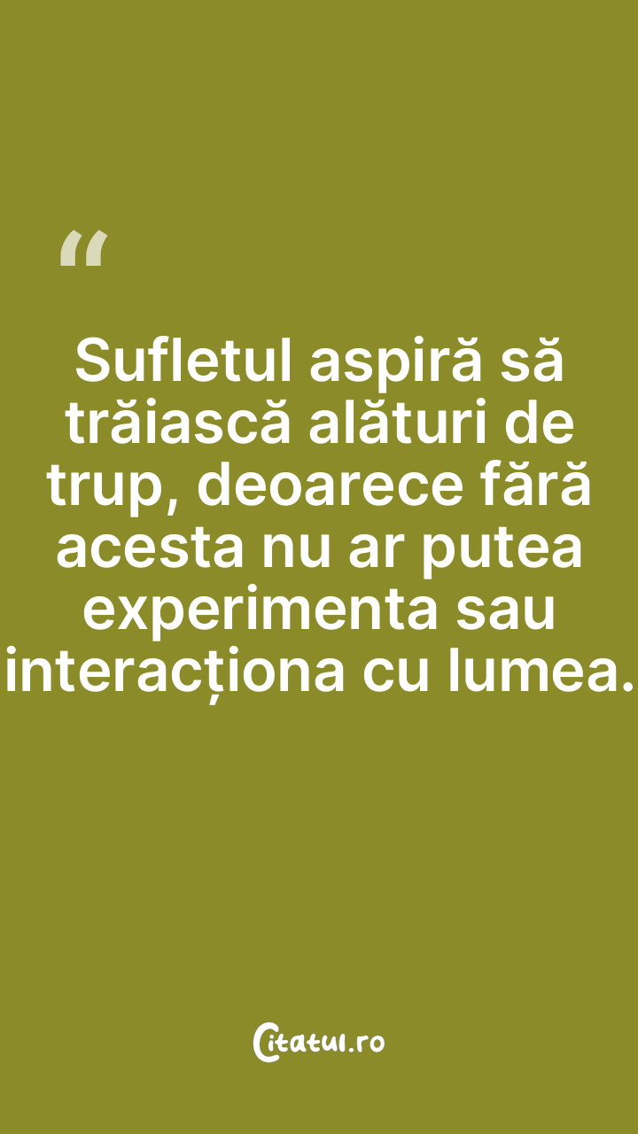 Sufletul aspiră să trăiască alături de trup, deoar...