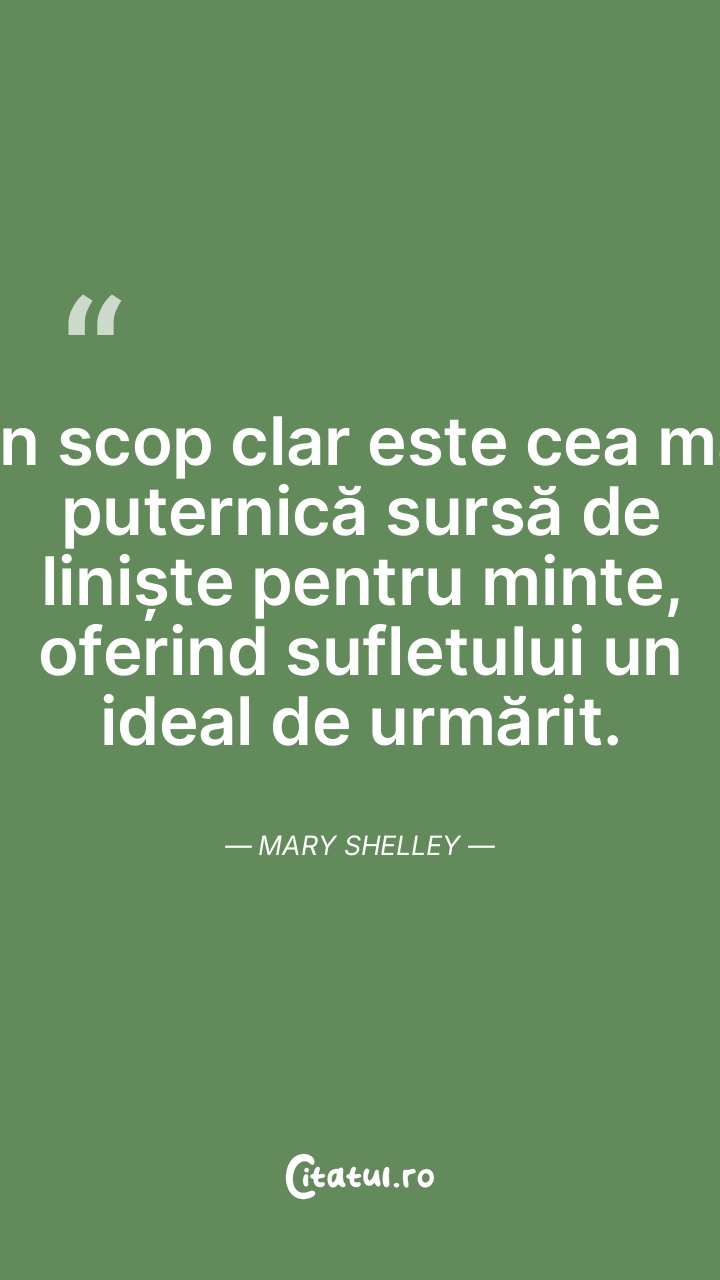 Un scop clar este cea mai puternică sursă de liniște pentru minte, oferind sufletului un ideal de urmărit. Mary Shelley