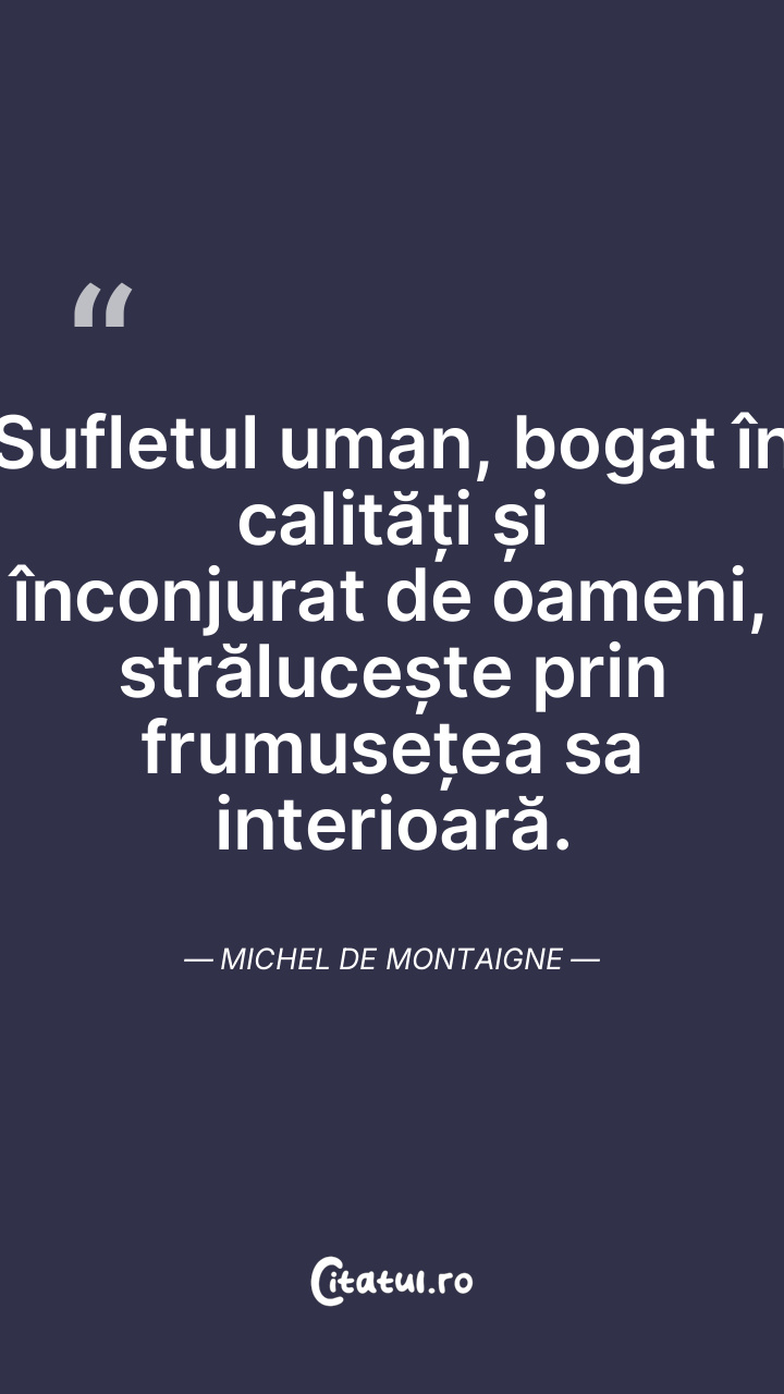 Sufletul uman, bogat în calități și înconjurat de oameni, strălucește prin frumusețea sa interioară. Michel de Montaigne