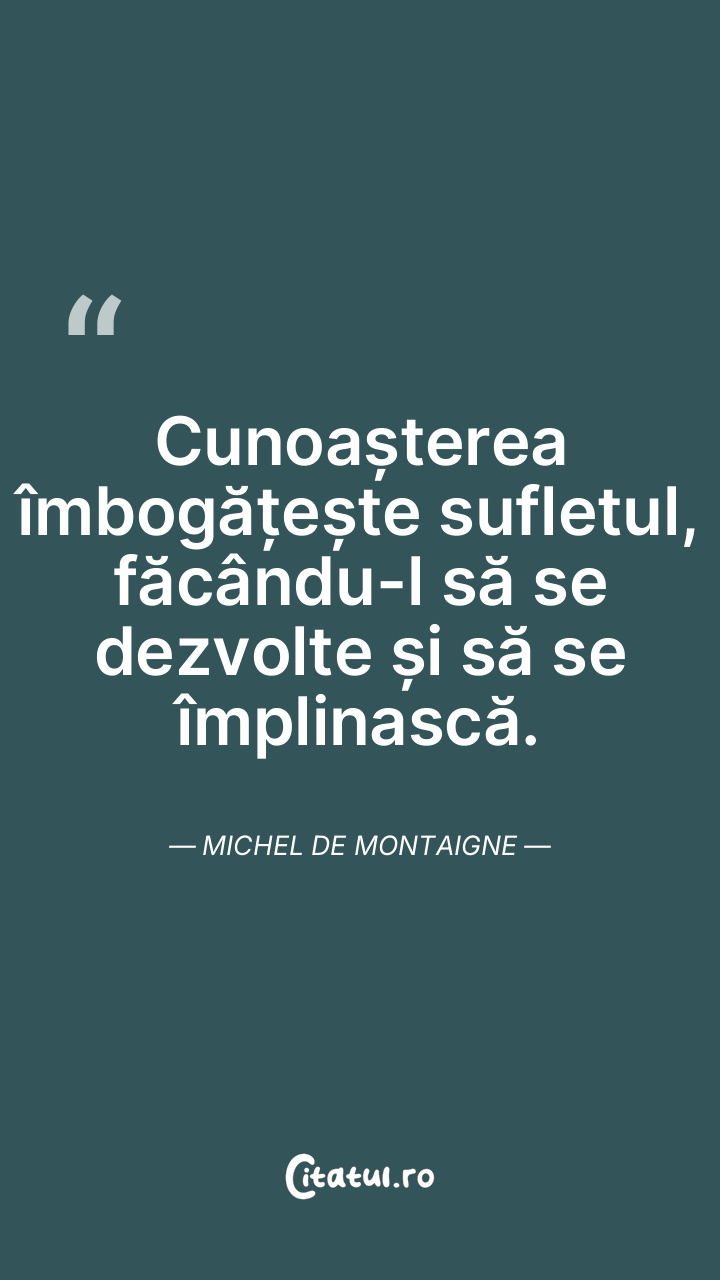Cunoașterea îmbogățește sufletul, făcându-l să se dezvolte și să se împlinască. Michel de Montaigne