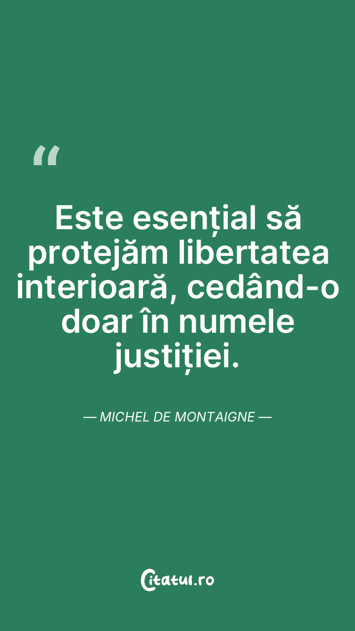 Este esențial să protejăm libertatea interioară, cedând-o doar în numele justiției. Michel de Montaigne