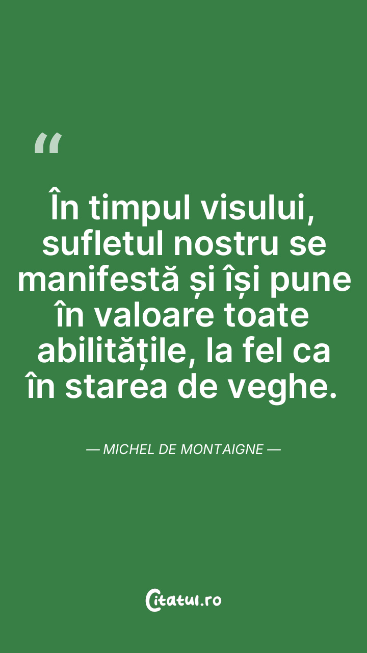 În timpul visului, sufletul nostru se manifestă și își pune în valoare toate abilitățile, la fel ca în starea de veghe. Michel de Montaigne