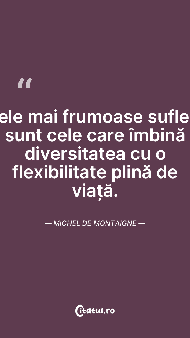 Cele mai frumoase suflete sunt cele care îmbină diversitatea cu o flexibilitate plină de viață. Michel de Montaigne