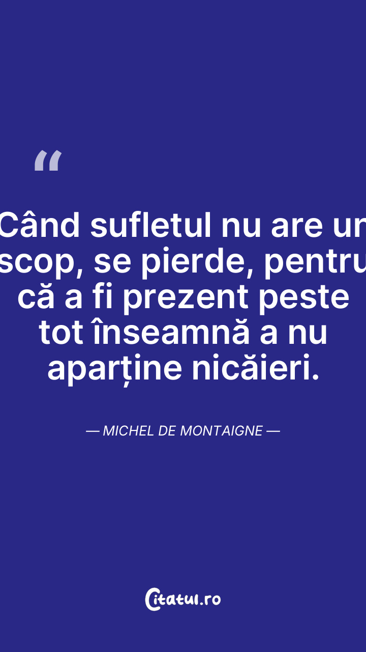 Când sufletul nu are un scop, se pierde, pentru că a fi prezent peste tot înseamnă a nu aparține nicăieri. Michel de Montaigne