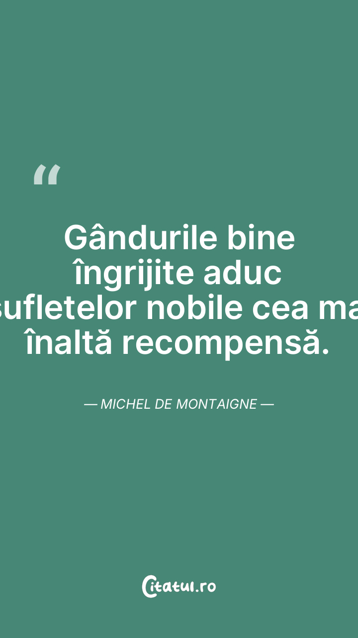 Gândurile bine îngrijite aduc sufletelor nobile cea mai înaltă recompensă. Michel de Montaigne