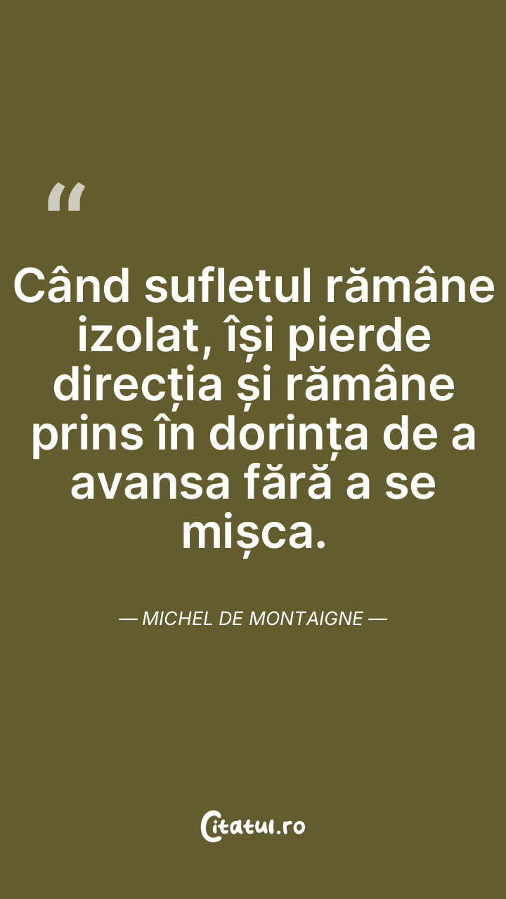 Când sufletul rămâne izolat, își pierde direcția și rămâne prins în dorința de a avansa fără a se mișca. Michel de Montaigne