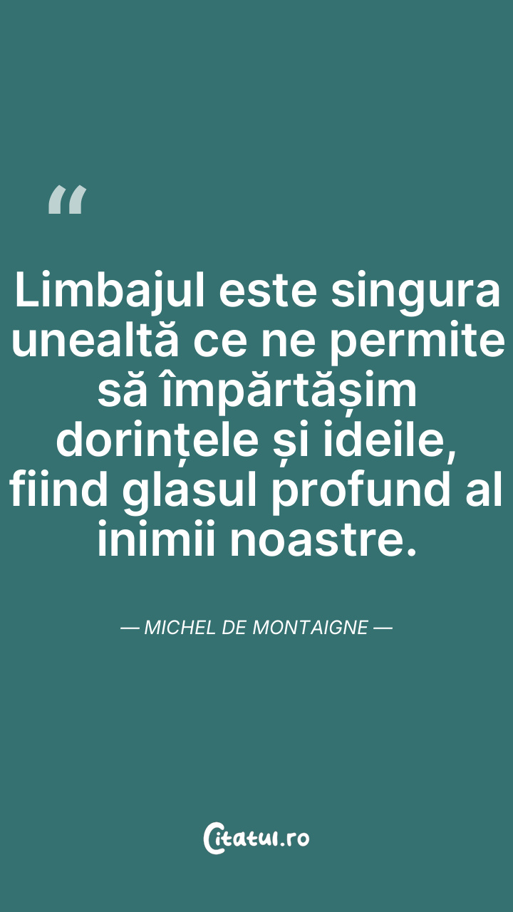 Limbajul este singura unealtă ce ne permite să împărtășim dorințele și ideile, fiind glasul profund al inimii noastre. Michel de Montaigne