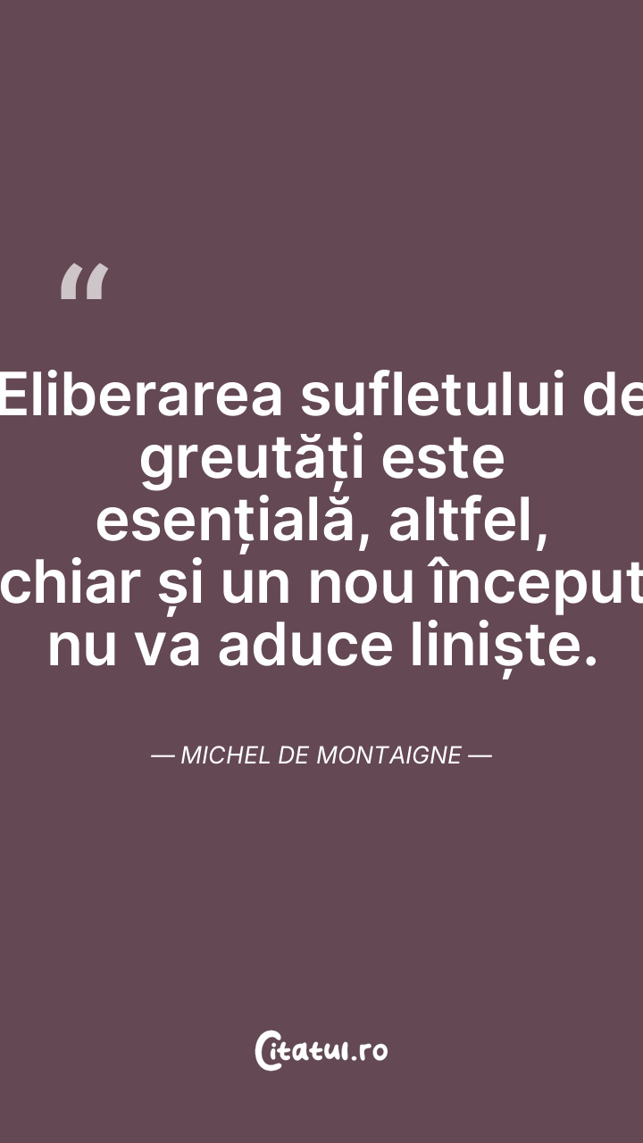 Eliberarea sufletului de greutăți este esențială, altfel, chiar și un nou început nu va aduce liniște. Michel de Montaigne