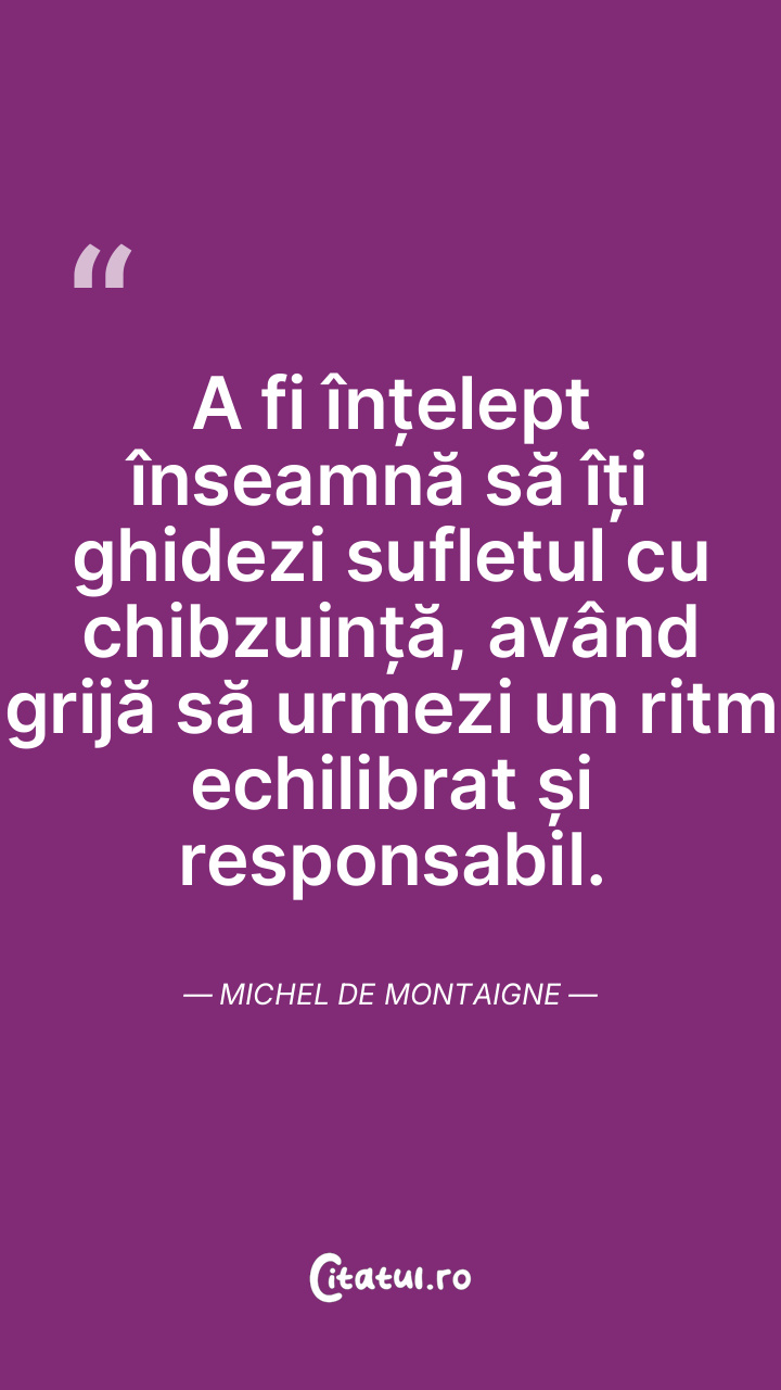 A fi înțelept înseamnă să îți ghidezi sufletul cu chibzuință, având grijă să urmezi un ritm echilibrat și responsabil. Michel de Montaigne