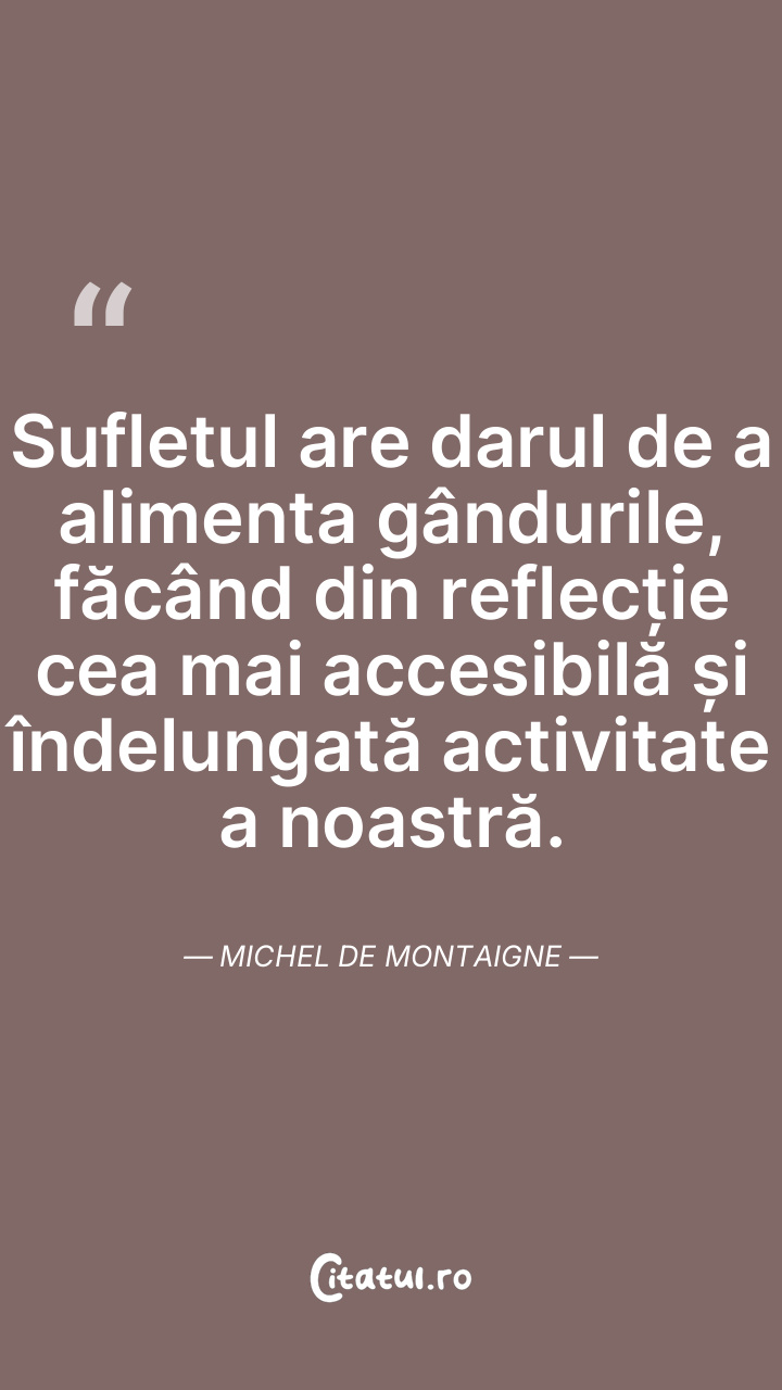 Sufletul are darul de a alimenta gândurile, făcând din reflecție cea mai accesibilă și îndelungată activitate a noastră. Michel de Montaigne