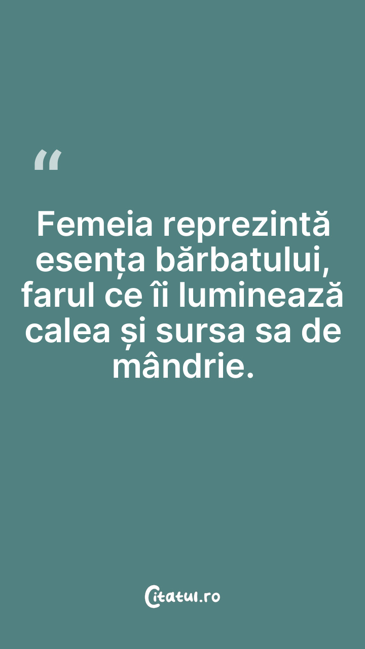 Femeia reprezintă esența bărbatului, farul ce îi luminează calea și sursa sa de mândrie.