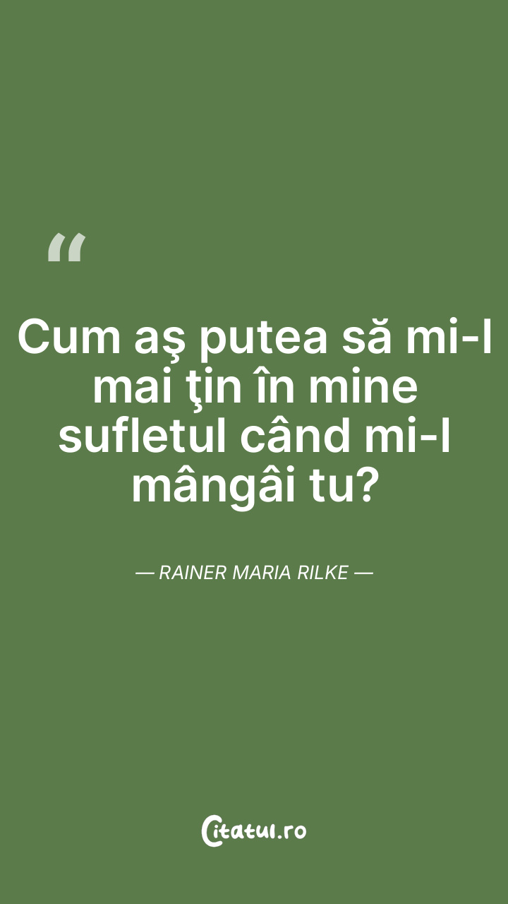 Cum aş putea să mi-l mai ţin în mine sufletul când mi-l mângâi tu? Rainer Maria Rilke