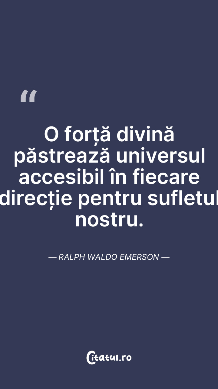 O forță divină păstrează universul accesibil în fiecare direcție pentru sufletul nostru. Ralph Waldo Emerson