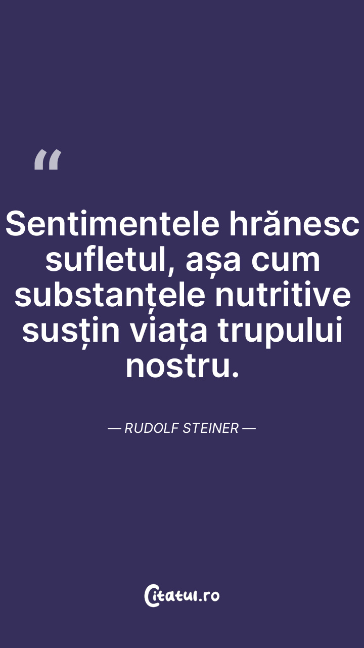 Sentimentele hrănesc sufletul, așa cum substanțele nutritive susțin viața trupului nostru. Rudolf Steiner