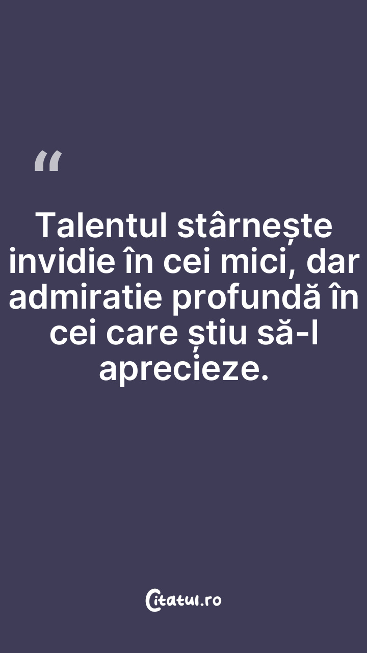 Talentul stârnește invidie în cei mici, dar admiratie profundă în cei care știu să-l aprecieze.