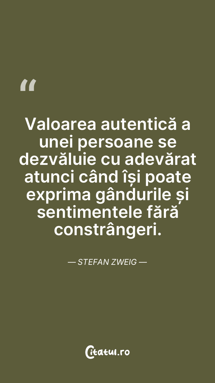 Valoarea autentică a unei persoane se dezvăluie cu adevărat atunci când își poate exprima gândurile și sentimentele fără constrângeri. Stefan Zweig