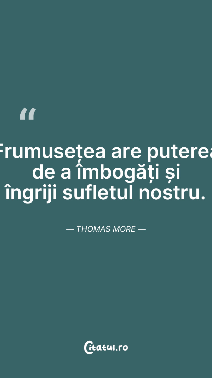 Frumusețea are puterea de a îmbogăți și îngriji sufletul nostru. Thomas More