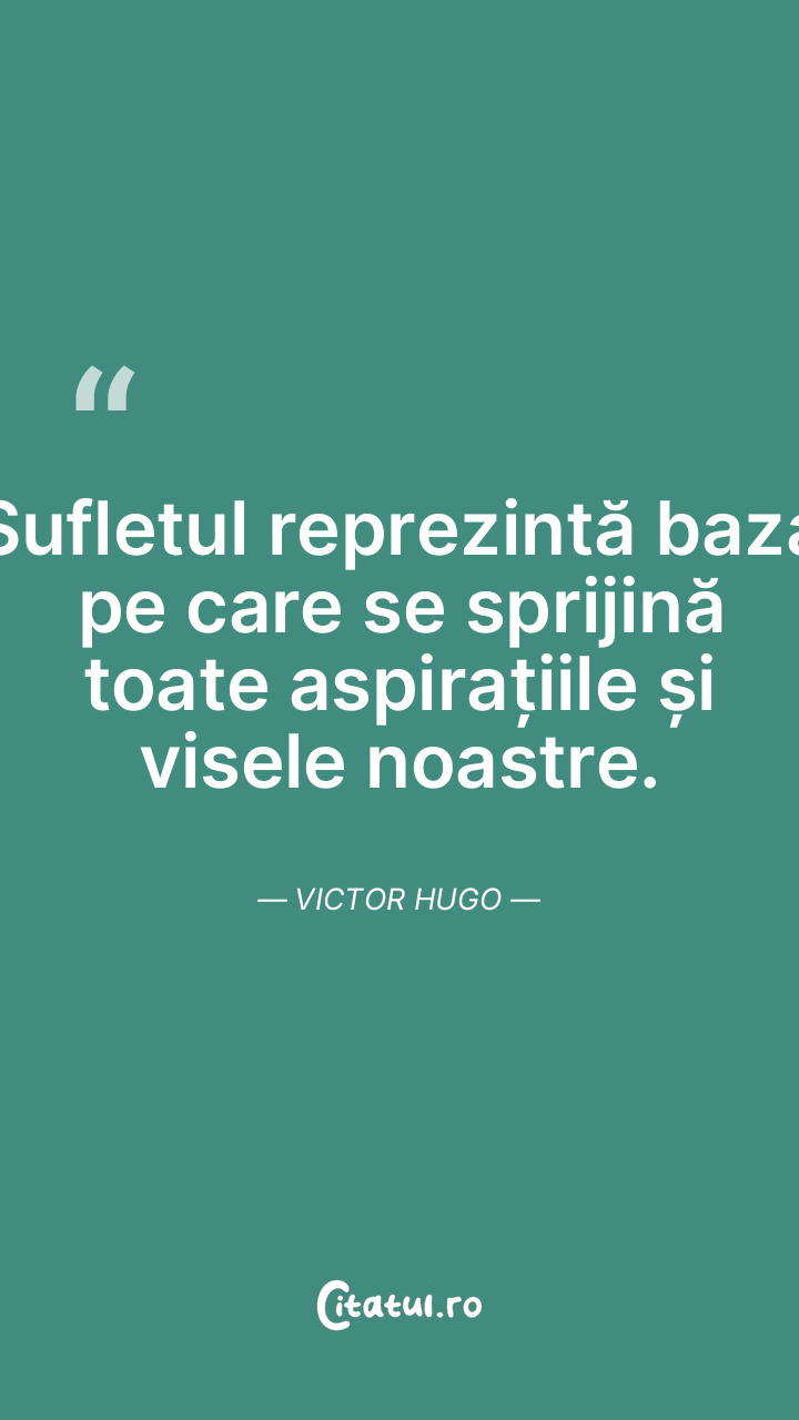 Sufletul reprezintă baza pe care se sprijină toate aspirațiile și visele noastre. Victor Hugo