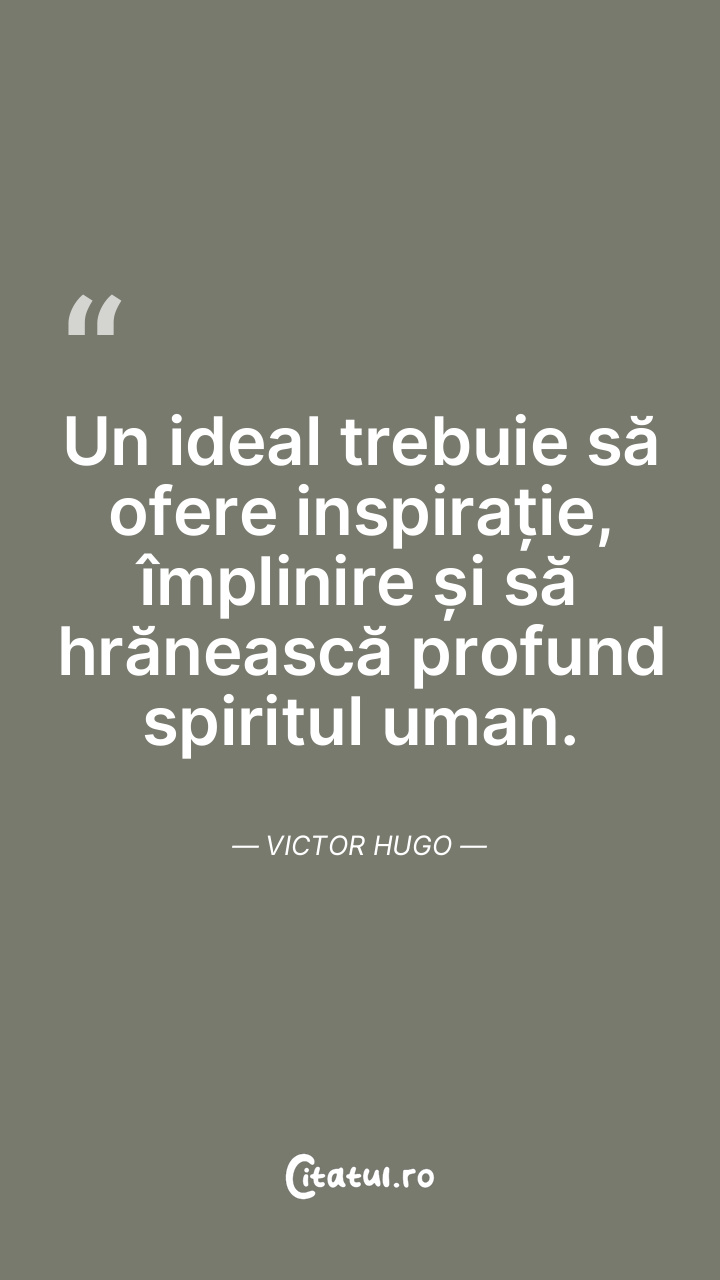 Un ideal trebuie să ofere inspirație, împlinire și să hrănească profund spiritul uman. Victor Hugo
