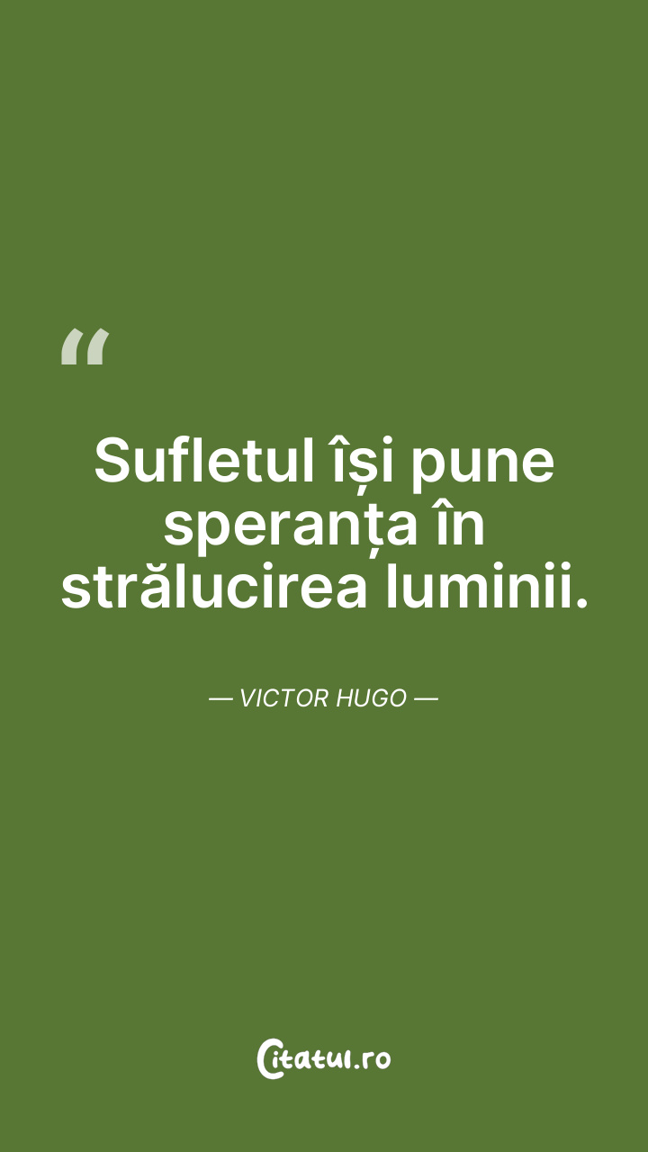 Sufletul își pune speranța în strălucirea luminii. Victor Hugo