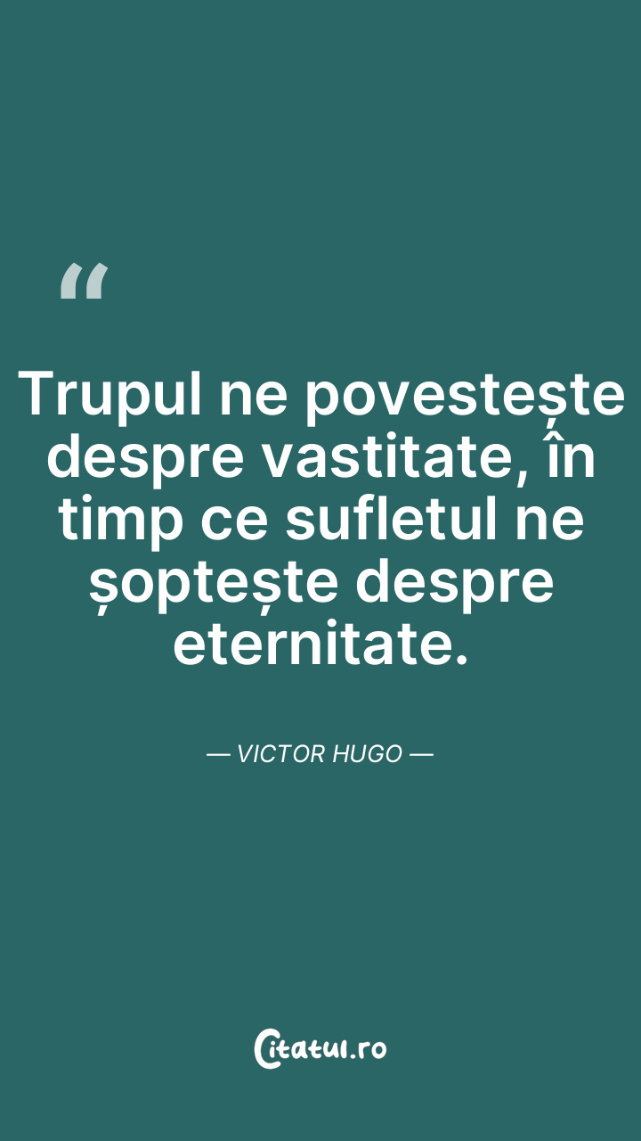 Trupul ne povestește despre vastitate, în timp ce sufletul ne șoptește despre eternitate. Victor Hugo