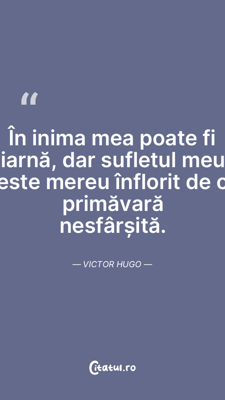 În inima mea poate fi iarnă, dar sufletul meu este mereu înflorit de o primăvară nesfârșită. Victor Hugo