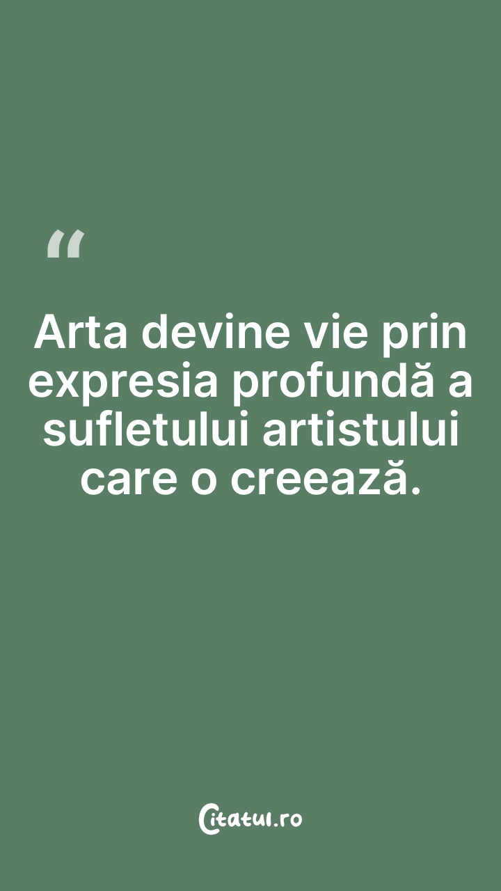Arta devine vie prin expresia profundă a sufletului artistului care o creează.