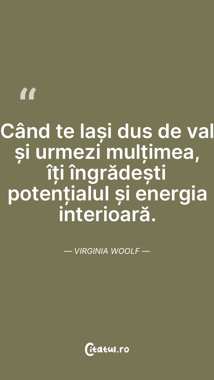 Când te lași dus de val și urmezi mulțimea, îți îngrădești potențialul și energia interioară. Virginia Woolf