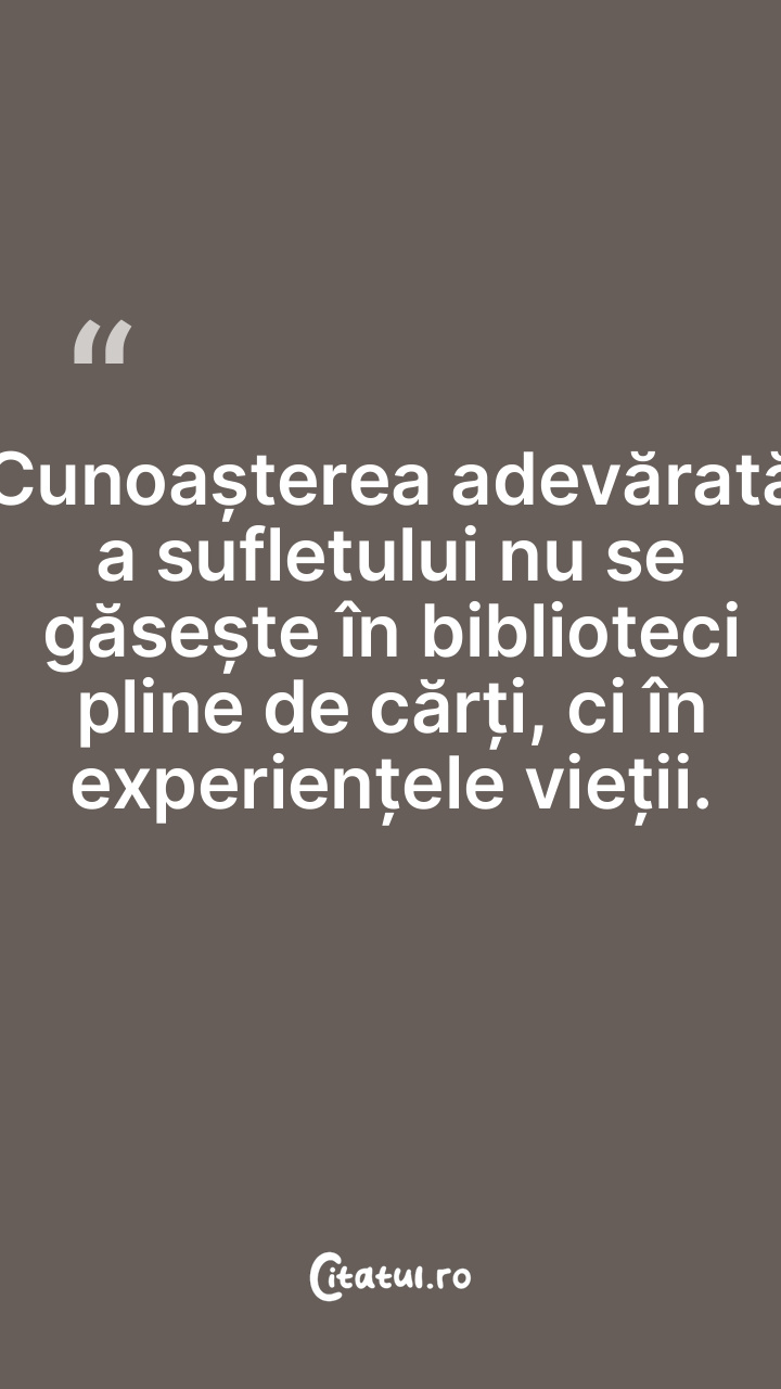 Cunoașterea adevărată a sufletului nu se găsește în biblioteci pline de cărți, ci în experiențele vieții.