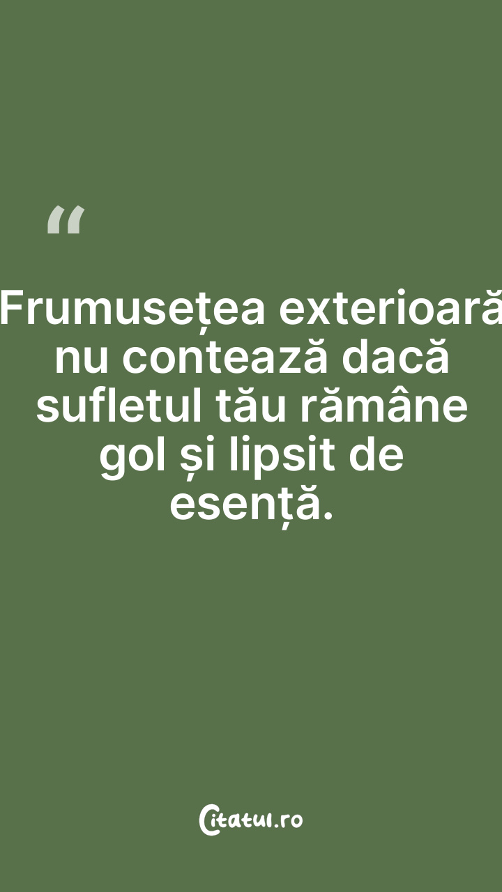Frumusețea exterioară nu contează dacă sufletul tău rămâne gol și lipsit de esență.