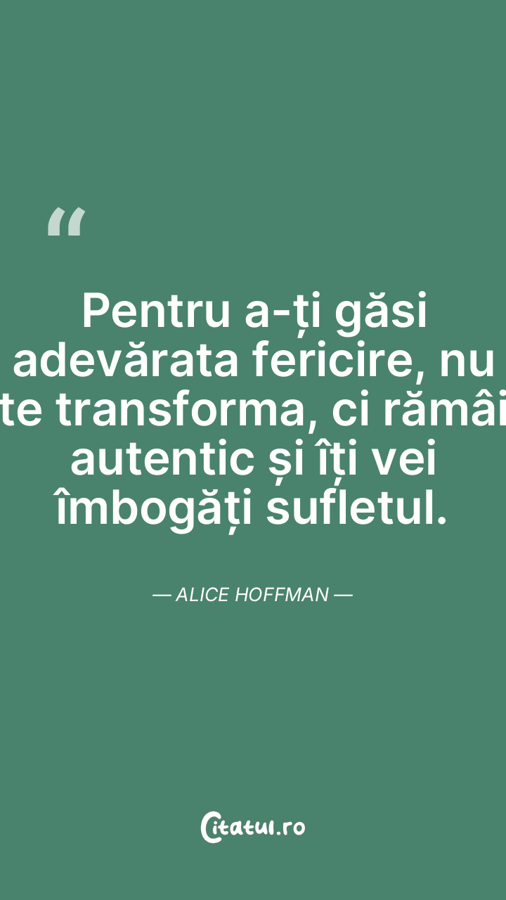 Pentru a-ți găsi adevărata fericire, nu te transforma, ci rămâi autentic și îți vei îmbogăți sufletul. Alice Hoffman