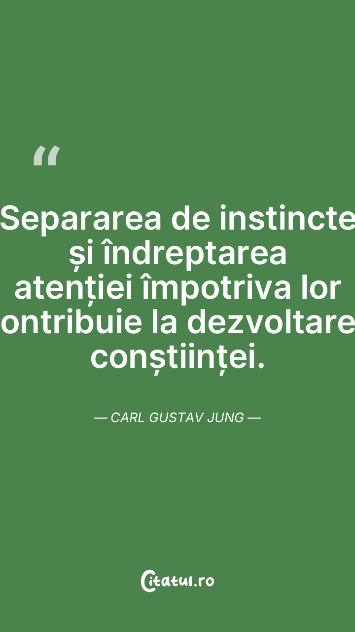 Separarea de instincte și îndreptarea atenției împotriva lor contribuie la dezvoltarea conștiinței. Carl Gustav Jung