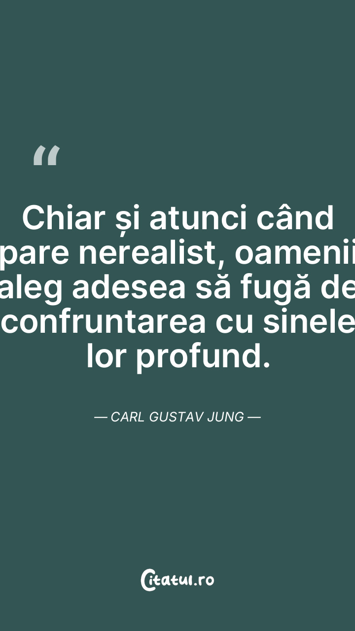 Chiar și atunci când pare nerealist, oamenii aleg adesea să fugă de confruntarea cu sinele lor profund. Carl Gustav Jung