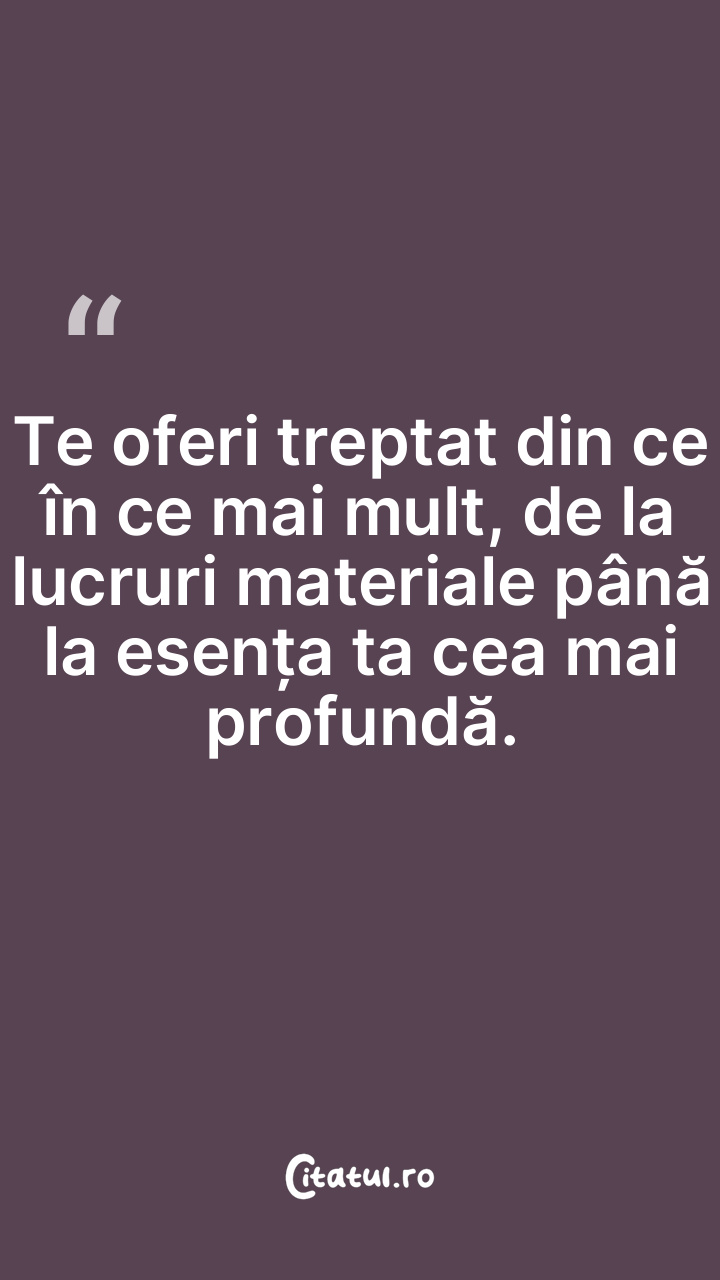 Te oferi treptat din ce în ce mai mult, de la lucruri materiale până la esența ta cea mai profundă.