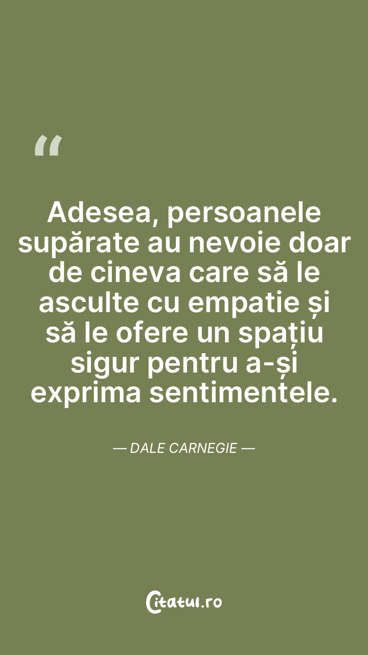 Adesea, persoanele supărate au nevoie doar de cineva care să le asculte cu empatie și să le ofere un spațiu sigur pentru a-și exprima sentimentele. Dale Carnegie