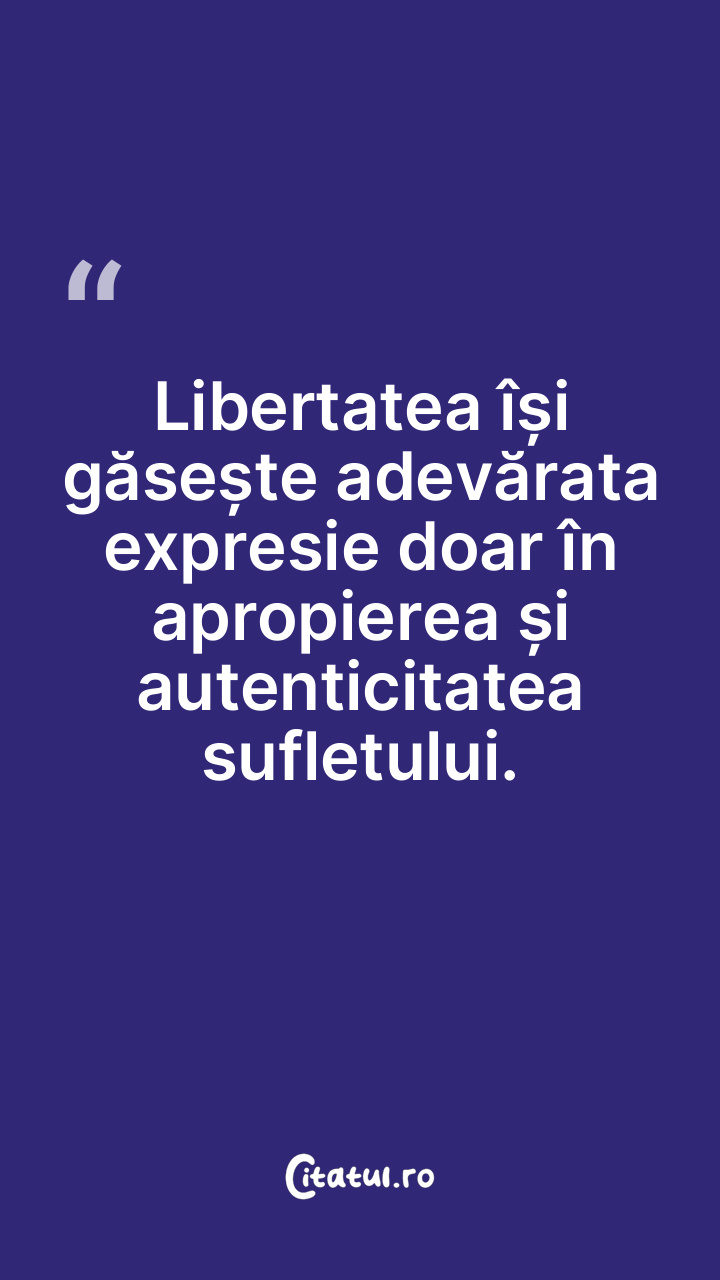 Libertatea își găsește adevărata expresie doar în apropierea și autenticitatea sufletului.