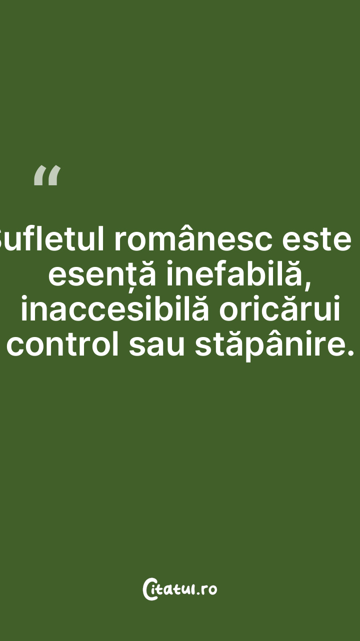 Sufletul românesc este o esență inefabilă, inaccesibilă oricărui control sau stăpânire.