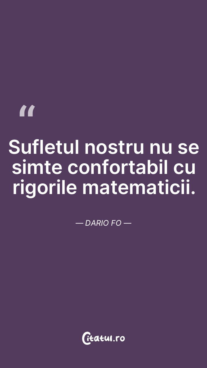 Sufletul nostru nu se simte confortabil cu rigorile matematicii. Dario Fo