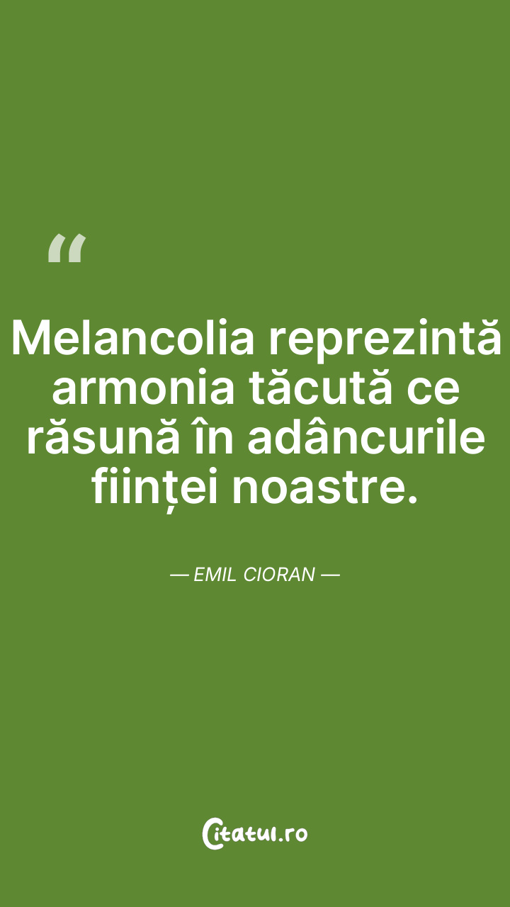 Melancolia reprezintă armonia tăcută ce răsună în adâncurile ființei noastre. Emil Cioran