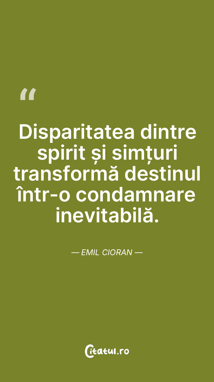 Disparitatea dintre spirit și simțuri transformă destinul într-o condamnare inevitabilă. Emil Cioran