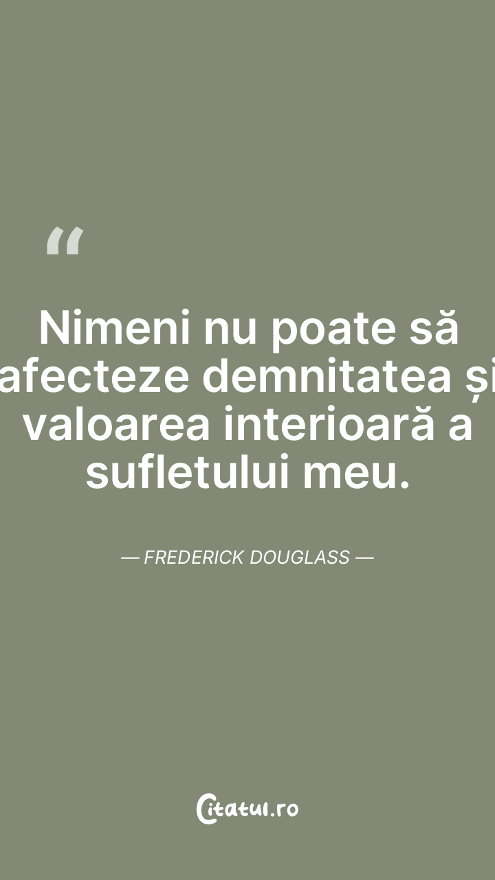 Nimeni nu poate să afecteze demnitatea și valoarea interioară a sufletului meu. Frederick Douglass