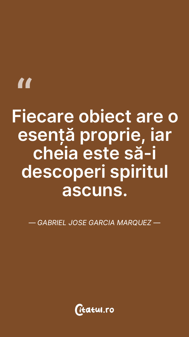 Fiecare obiect are o esență proprie, iar cheia este să-i descoperi spiritul ascuns. Gabriel Jose Garcia Marquez