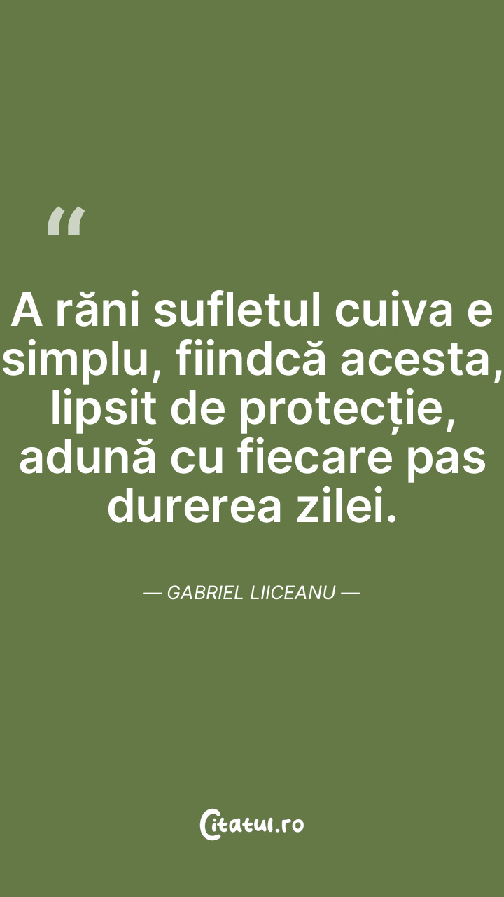 A răni sufletul cuiva e simplu, fiindcă acesta, lipsit de protecție, adună cu fiecare pas durerea zilei. Gabriel Liiceanu