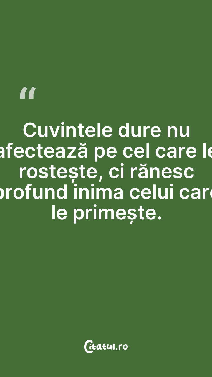 Cuvintele dure nu afectează pe cel care le rostește, ci rănesc profund inima celui care le primește.
